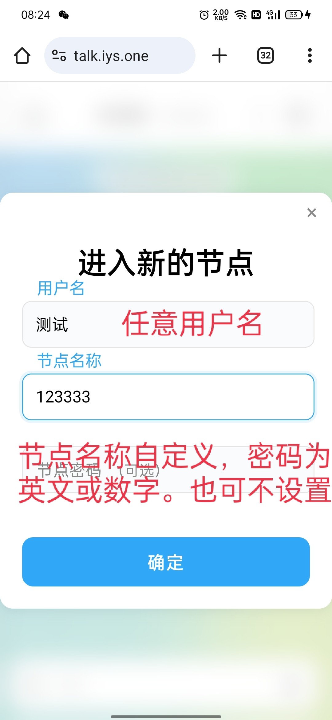 https://talk.iys.one/?r=8uZO9N.Y 这是测试房间,点击加入
