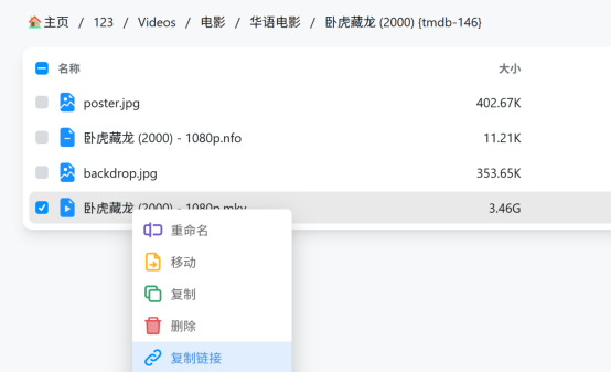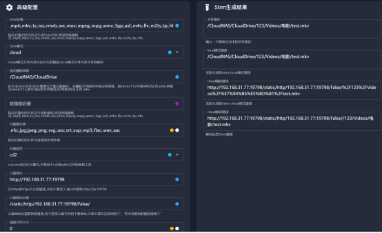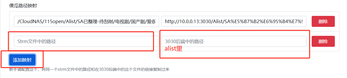 admin 部署环境 服务器或NAS(飞牛 群晖等) Cd2的挂载路径为/vol1/1000/CloudNAS/CloudDrive 权限777 Cd2添加123网盘,最好是改名成123,方便些,实际验证你webdav方式添加 alist也行。 然后使用symedia: 1、映射本地文件/vol1/1000/Video/strm到symedia的strm,根据自己想要的修改 2、添加同步 Strm模式选择cloud,指定删除前缀其实就是你开始cd2挂载的路径/CloudNAS/CloudDrive,按你实际的填 2、配置emby 3、配置alist Alist里123网盘的挂载路径填123 再到管理后台里把设置-全局-签名所有关掉 Alist增加123网盘后,找到里面随便一部影片复制链接 比如我这个就是:http://192.168.31.77:5244/d/123/Videos/%E7%94%B5%E5%BD%B1/%E5%8D%8E%E8%AF%AD%E7%94%B5%E5%BD%B1/%E5%8D%A7%E8%99%8E%E8%97%8F%E9%BE%99%20(2000)%20%7Btmdb-146%7D/%E5%8D%A7%E8%99%8E%E8%97%8F%E9%BE%99%20(2000)%20-%201080p.mkv 进入emby 找到这部对应的影片,最下面的媒体信息复制 http://192.168.31.77:19798/static/http/192.168.31.77:19798/False/%2F123%2FVideos%2F%E7%94%B5%E5%BD%B1%2F%E7%94%B5%E5%BD%B1%2F%E5%8D%8E%E8%AF%AD%E7%94%B5%E5%BD%B1%2F%E5%8D%A7%E8%99%8E%E8%97%8F%E9%BE%99%20%282000%29%20%7Btmdb-146%7D%2F%E5%8D%A7%E8%99%8E%E8%97%8F%E9%BE%99%20%282000%29%20-%201080p.mkv 4、配置fastemby 打开fastemby的config目录里的config.yaml 把你emby里的影片对应的链接复制替换 Strm文件中的路径 把alist里的影片对应的链接复制替换3030后端中的路径 比如我的就改成 ["http://192.168.31.77:19798/static/http/192.168.31.77:19798/False/%2F123%2FVideos%2F%E7%94%B5%E5%BD%B1%2F%E7%94%B5%E5%BD%B1%2F%E5%8D%8E%E8%AF%AD%E7%94%B5%E5%BD%B1%2F%E5%8D%A7%E8%99%8E%E8%97%8F%E9%BE%99%20%282000%29%20%7Btmdb-146%7D%2F%E5%8D%A7%E8%99%8E%E8%97%8F%E9%BE%99%20%282000%29%20-%201080p.mkv => http://192.168.31.77:5244/d/123/Videos/%E7%94%B5%E5%BD%B1/%E5%8D%8E%E8%AF%AD%E7%94%B5%E5%BD%B1/%E5%8D%A7%E8%99%8E%E8%97%8F%E9%BE%99%20(2000)%20%7Btmdb-146%7D/%E5%8D%A7%E8%99%8E%E8%97%8F%E9%BE%99%20(2000)%20-%201080p.mkv"] 或者直接到UI页面 打开 ip:15895 进行傻瓜路径映射 最后保存,重启fastemby后到emby播放即可。 能顺利播放后,到docker fastemby日志查看验证是否302成功。